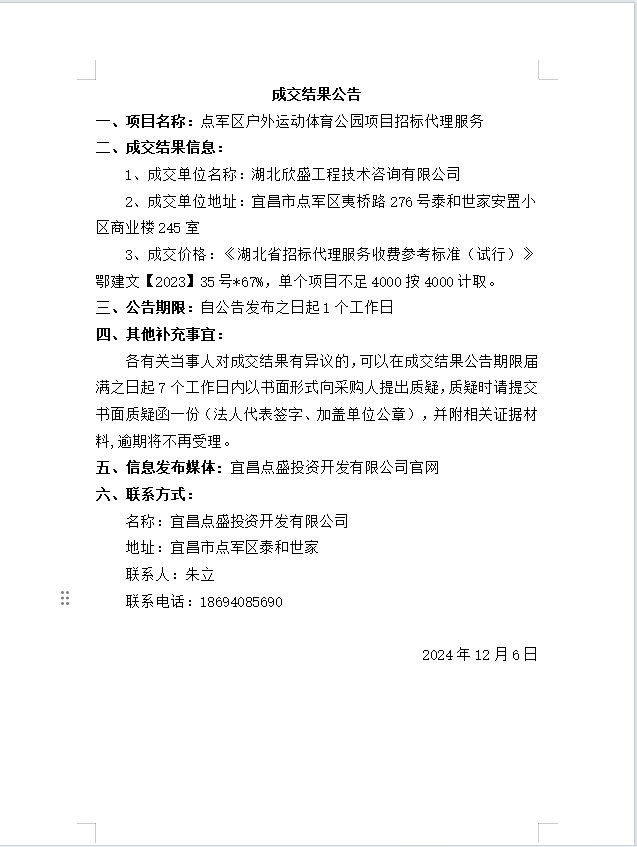 點(diǎn)軍區(qū)戶(hù)外運(yùn)動(dòng)體育公園項(xiàng)目招標(biāo)代理服務(wù)成交公告