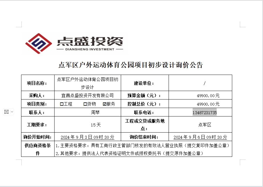 發(fā)布時間:2024/9/3 來源:宜昌點盛投資開發(fā)有限公司 訪問:5661